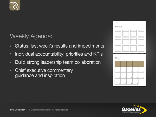 Last blog Why Meeting Rhythms are a Critical Strategic Discipline we captured why weekly meetings are so important, providing a little tease on why, what, and how to conduct this centerpiece of aligning discipline that stirs growth in your business.